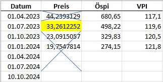vom 1.10.2023 bis 1.4.2024 ergäbe sich folgender Verrechnungspreis.