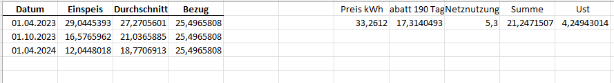 Als Verkaufs- und Einkaufpreis gilt der Durchschnittspreis aus aktuellem Verkaufspreis und Strombezugspreis, jedoch nie niedriger als der Einspeisepreis.